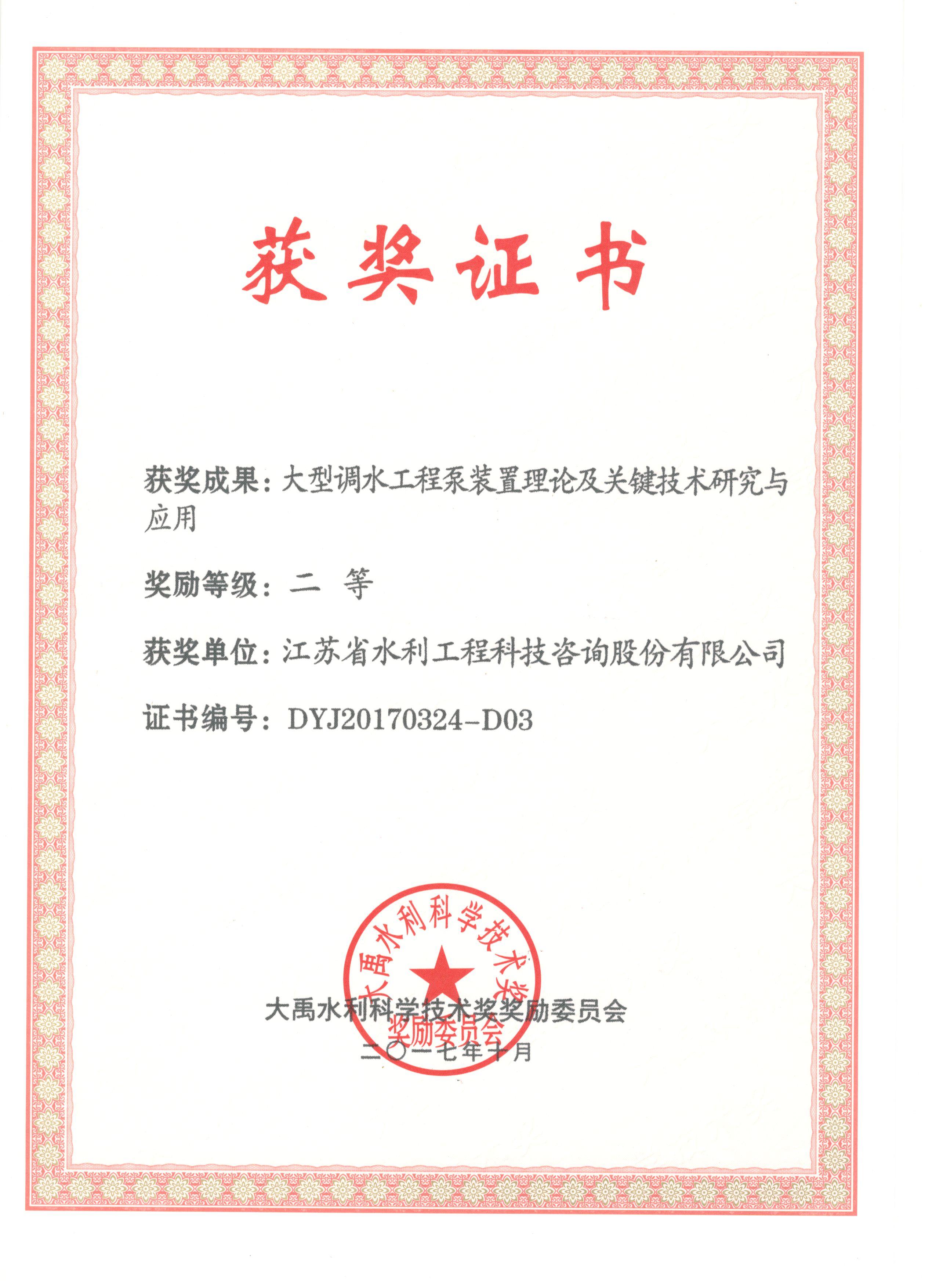 | 公司喜獲大禹水利科學(xué)技術(shù)獎作者:admin 來源: 日期:2018-4-23 15:55:06 人氣: