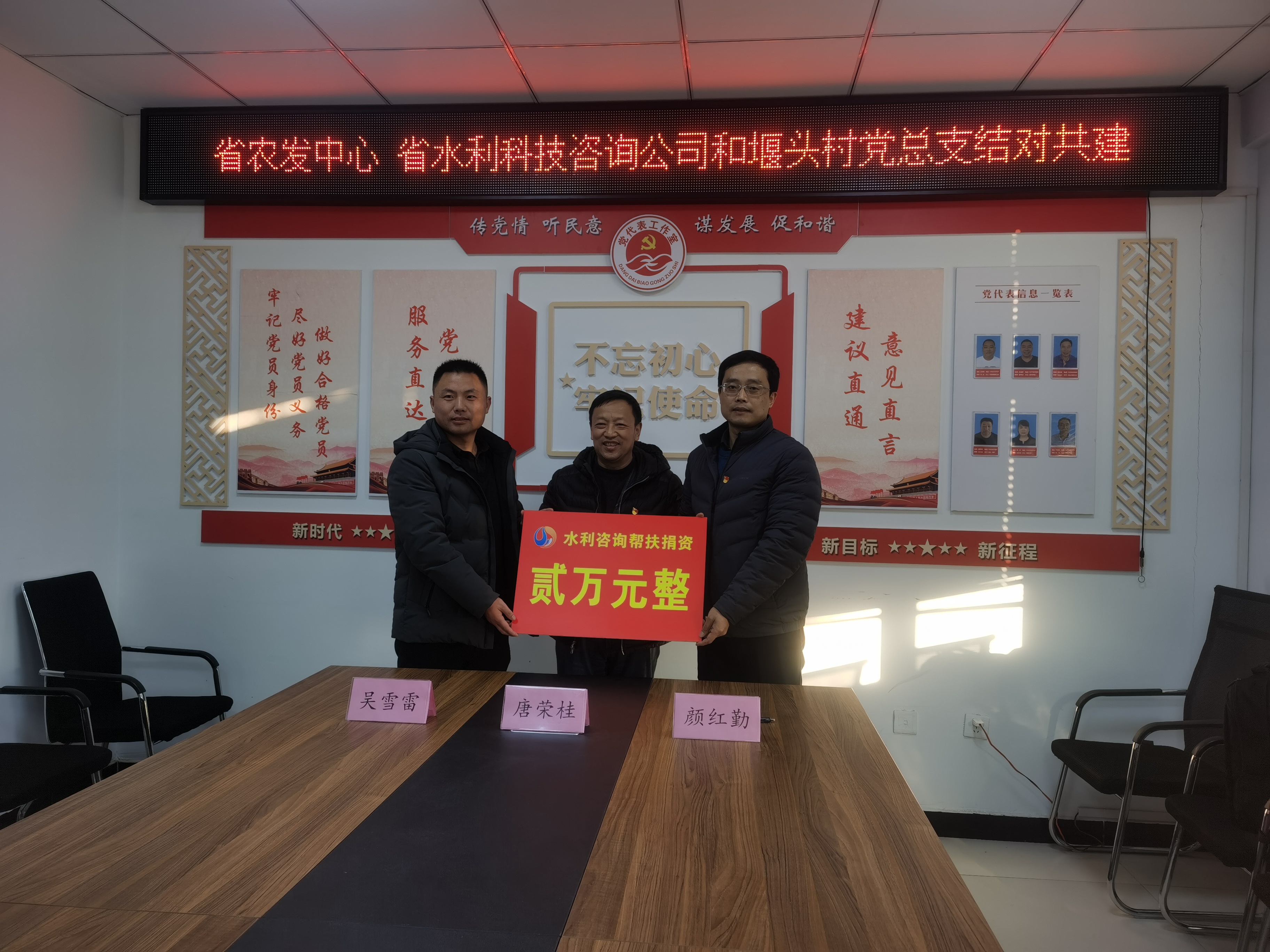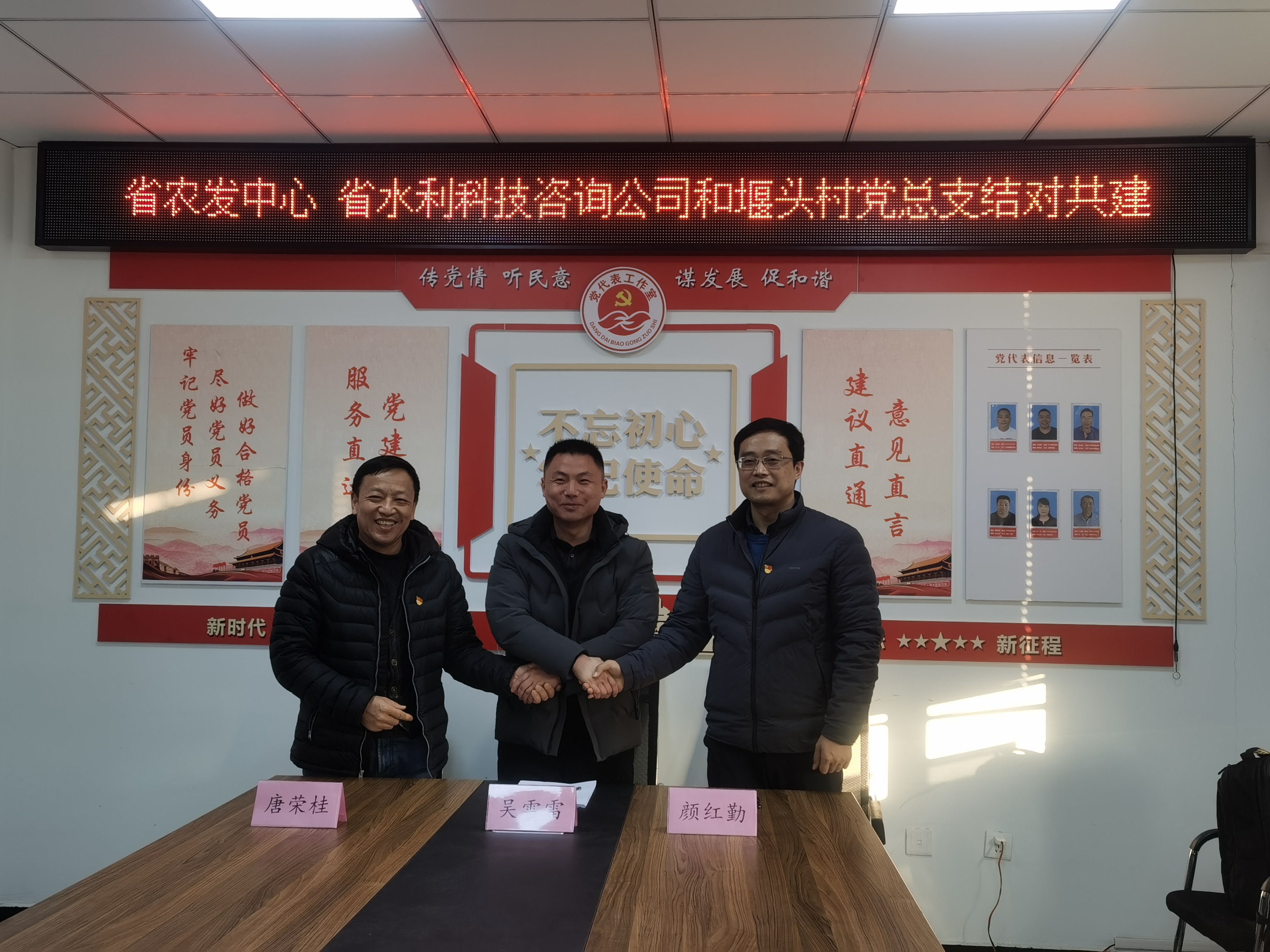 1月13日,公司黨支部書記、董事長兼總經(jīng)理顏紅勤與省農(nóng)村水利科技發(fā)展中心黨支部書記、主任唐榮桂共同帶領(lǐng)相關(guān)工作人員,前往新沂市草橋鎮(zhèn)堰頭村開展結(jié)對共建活動。 本次活動以加強支部共學(xué)共進為主題,共建三方分別介紹了支部情況,并就黨建與業(yè)務(wù)開展情況及下階段工作安排進行了交流座談,提出了共建目標(biāo)與具體方案。 顏紅勤在座談會上表示,共建是各方相互學(xué)習(xí)的重要途徑,我們將全力支持此項活動,以黨建促聯(lián)建,以聯(lián)建促發(fā)展。我們將充分發(fā)揮水利咨詢單位的資源優(yōu)勢,配合堰頭村在完善村莊規(guī)劃布局、環(huán)境綜合整治布點等方面進行綜合規(guī)劃,用實際行動為堰頭村建設(shè)作貢獻。